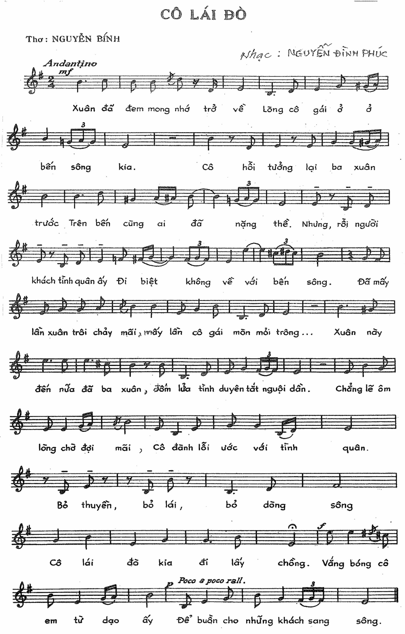 Sau này vì yêu và cảm nhận được giá trị những bài thơ xuân cũ, các nhạc sĩ Nguyễn Đình Phúc (sinh năm 1919), Đức Quỳnh (sinh năm 1922), Trần Chung (sinh năm 1927), Từ Vũ (sinh năm 1932), Huy Thục (sinh năm 1933), Lê Anh (sinh năm 1937), Lê Ngọc Ẩn (sinh năm 1955)... đã lần lượt phổ những bài thơ này thành ca khúc (sớm nhất là Cô lái đò ra đời từ 1943) đưa những ca khúc này một thời bay cao bay xa và cho đến nay những ca khúc đó vẫn đi cùng năm tháng.
